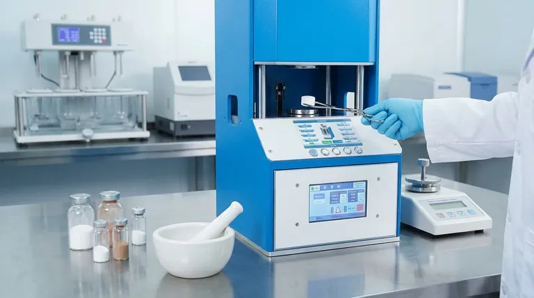 L'applicazione di una pressione uniforme compatta i farmaci in polvere e gli eccipienti (ingredienti inattivi) in una forma solida, tipicamente un pellet o una compressa. Questo processo garantisce una densità e una geometria coerenti, essenziali per test accurati.