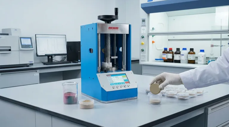 In sintesi, una pressa idraulica aiuta l'analisi a fluorescenza di raggi X (XRF) comprimendo un campione in polvere in un disco denso, solido e omogeneo, noto come pastiglia pressata. Questo processo non riguarda solo la compattazione; è un passo critico che crea una forma di campione standardizzata con una superficie e una densità uniformi. Questa uniformità è essenziale affinché lo spettrometro XRF produca risultati quantitativi accurati, affidabili e riproducibili.